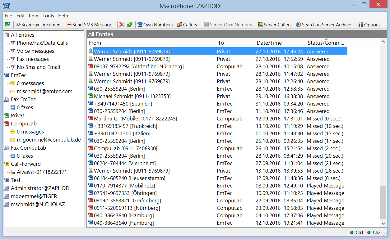 received fax messages, sent mobile phone short messages (SMS), etc.
