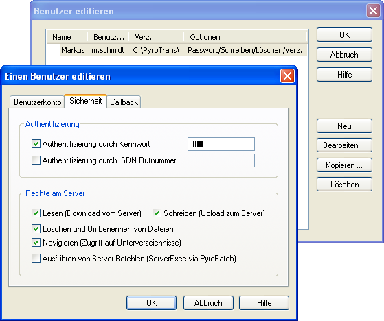 Die Benutzerverwaltung von PyroServer erlaubt das Anlegen von beliebig